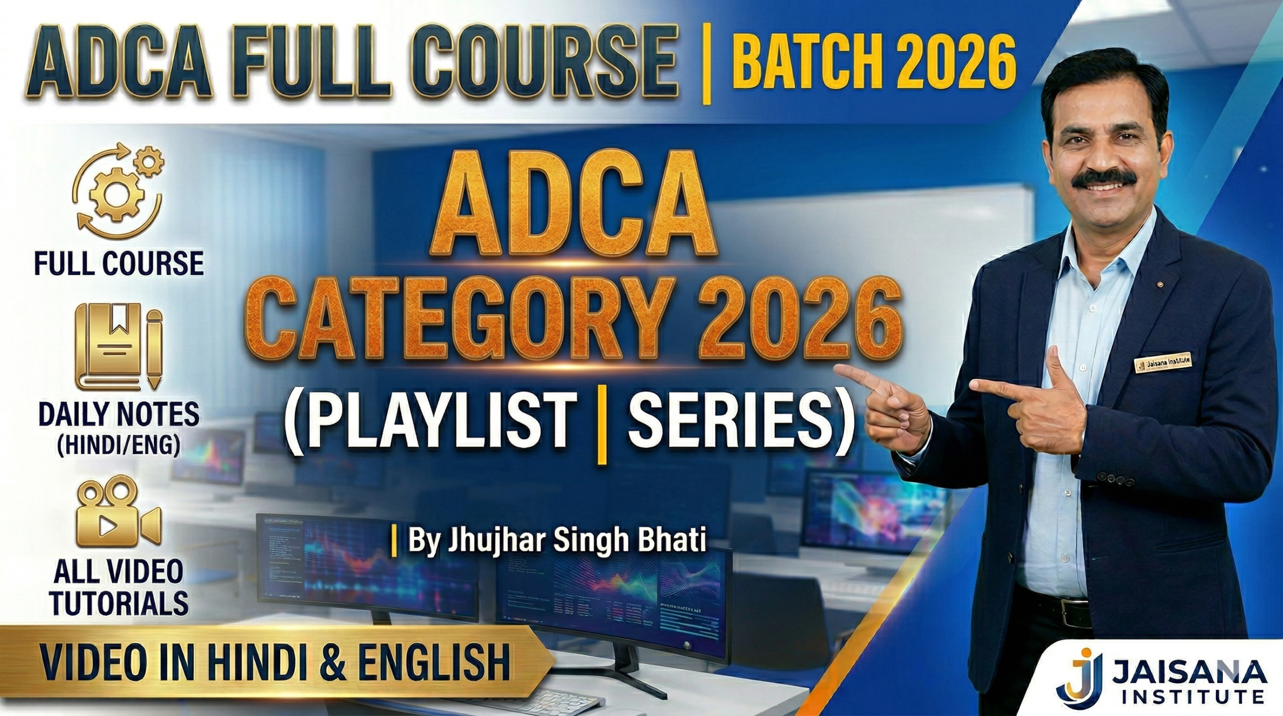 Welcome to the official ADCA 90-Day Mastery Series portal by Jaisana Institute. This page is designed to provide you with comprehensive, bilingual notes in both Hindi and English to complement our daily video lessons. To ensure the best learning outcomes, all students are strictly advised to watch the full video tutorials and diligently transcribe these notes into their physical notebooks for permanent reference and exam preparation.